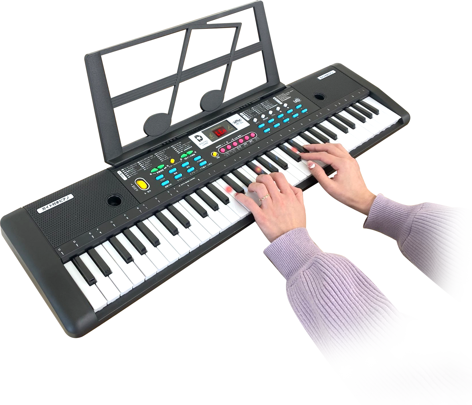 光る鍵盤をおいかけて練習できるため、初心者でも簡単に好きな曲を練習することができます。10本の指をうごかすことで、脳トレにも繋がります。