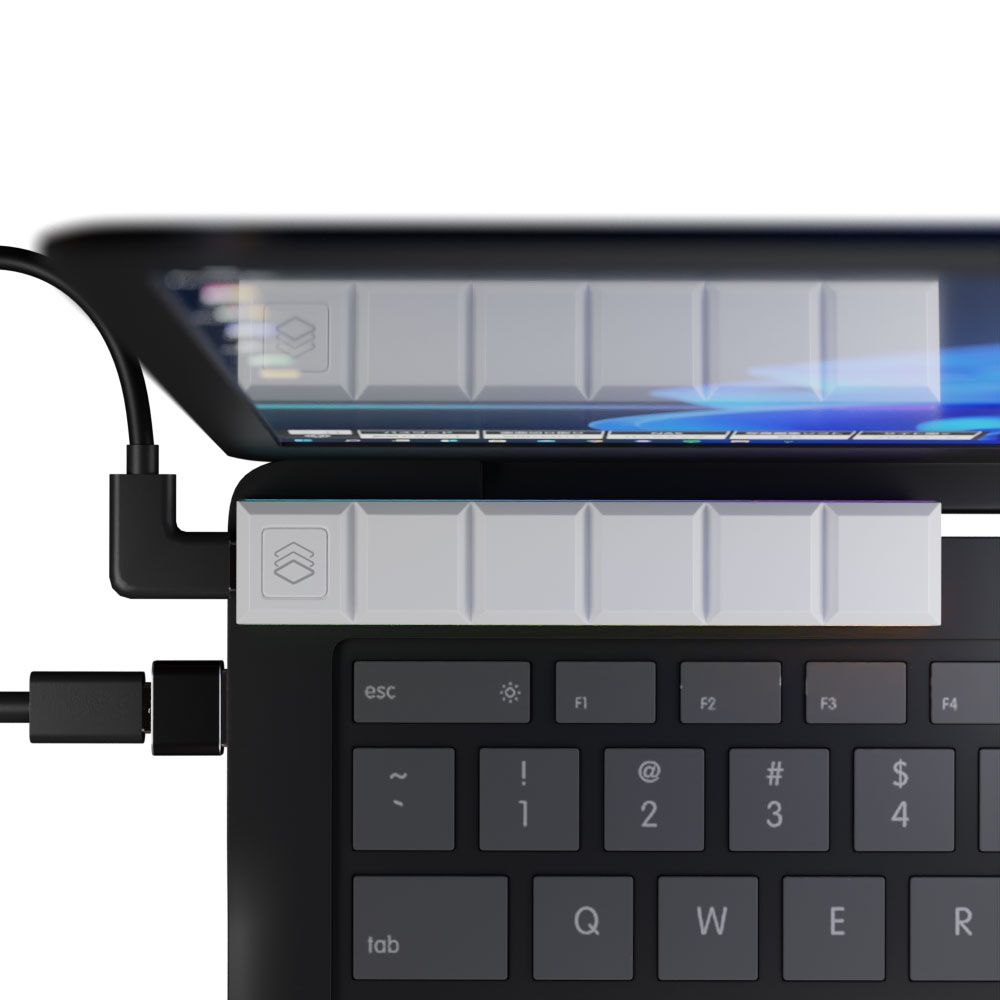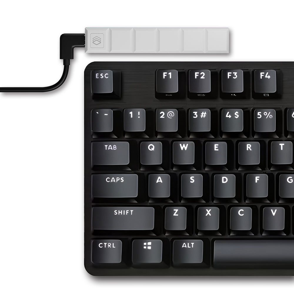 実用性を追及するために、従来のショートカットキーの体積を極限まで切り詰め、101mm×17mm×7.9mmの極小ボディ。そのため、使用環境に応じて自由に配置することができます。ノートパソコンでもデスクトップでも使用しやすいところに、場所選ばずに配置が可能です。