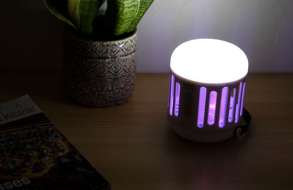 UVの光で虫をおびき寄せて退治する薬剤不使用の虫撃退グッズです。煙が出たり、薬品臭のする物に比べ、赤ちゃんやペットのいるご家庭でも安心、安全に使えます。(高電圧を使用しているため、焦げる臭いがする場合があります。)