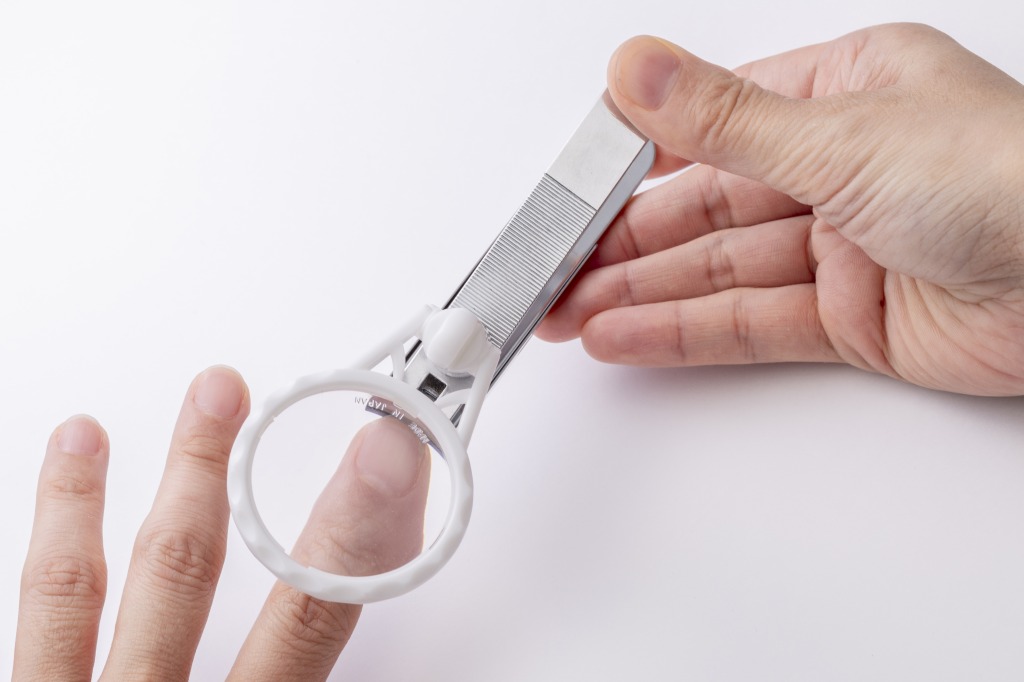 強力な磁石の付いた最大約2.5倍のルーペが付いています。手元がはっきり大きく、細かい部分も良く見えるので、爪を切りやすくなります。