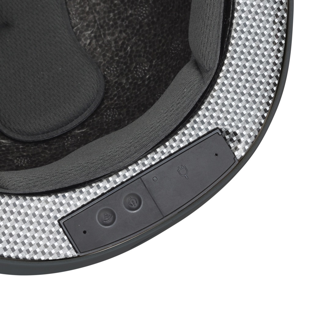 操作・コネクト部はヘルメット前方のひさし部分にあります。