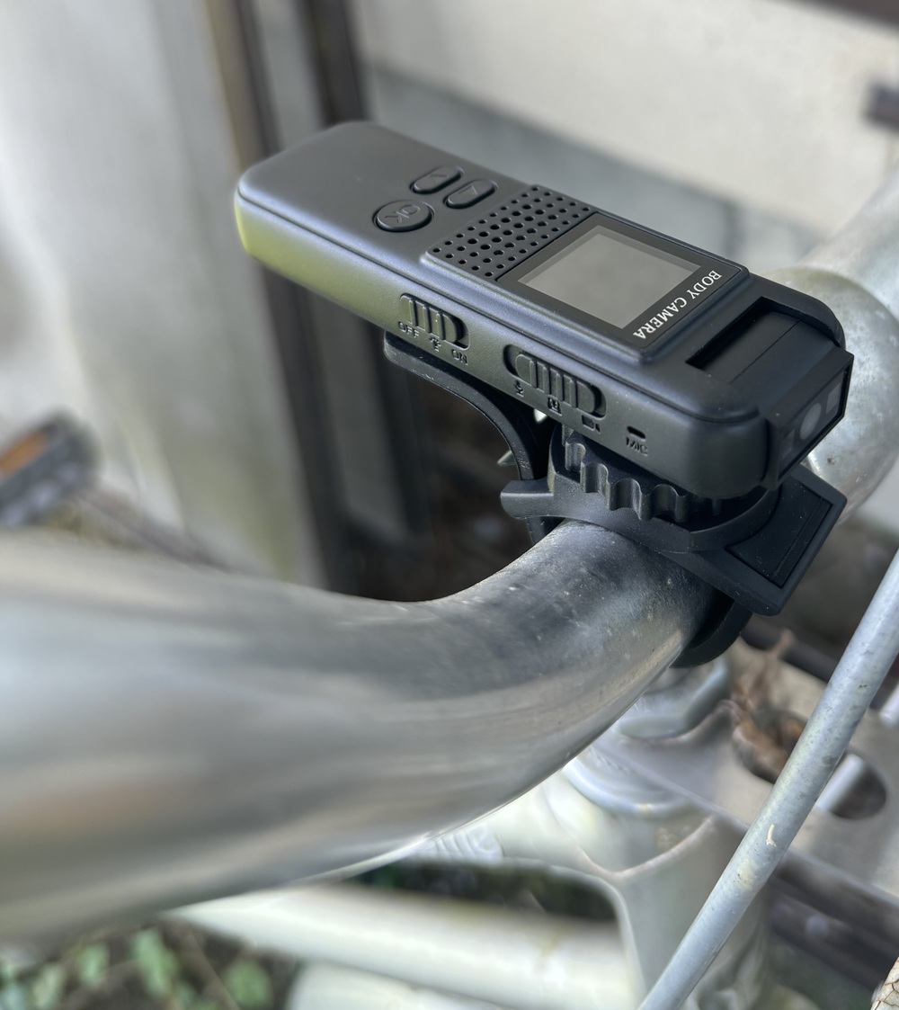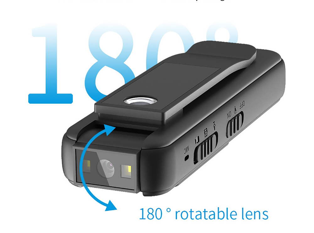 本体上部には180度回転式カメラを搭載し、衣類に装着して歩行時の「ボディカメラ」として、液晶画面を見ながらの「手持ちカメラ」として、付属のマウントで自転車に装着して「自転車用レコーダー」として、防犯からビジネス、エンターテインメントまで幅広く活躍します。