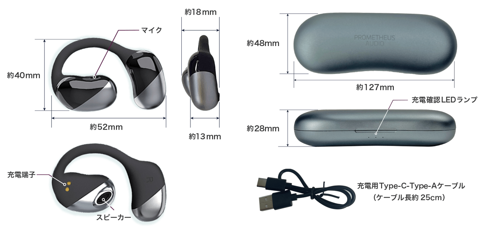 | 充電ケース:W127×H48×D28 (mm) | |