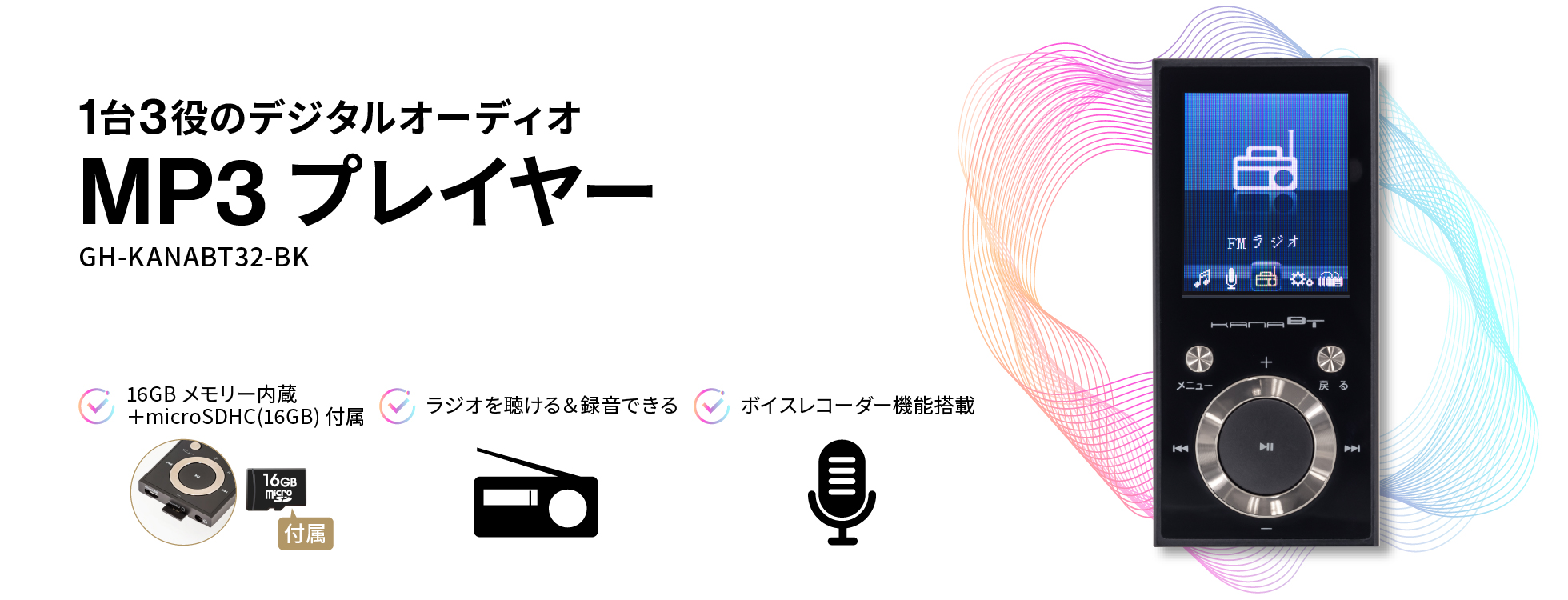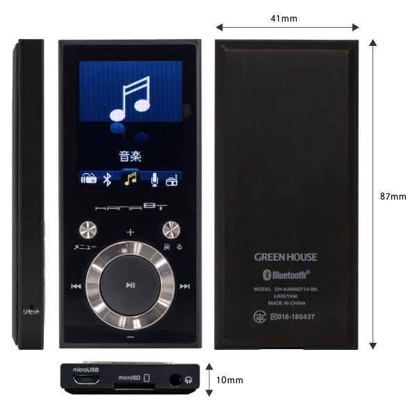 | 製品名 | グリーンハウス MP3プレーヤー KANA Bluetooth 32GB ブラック |