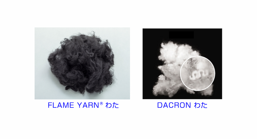 蓄熱効果の高い天然鉱石繊維「FLAME YARN® わた」と、3次元オメガ構造で抗菌防臭と弾力性を持つ「DACRON わた」。2つの繊維をミックスし誕生した、保温性が高いオリジナルの「わた」を使用しています。