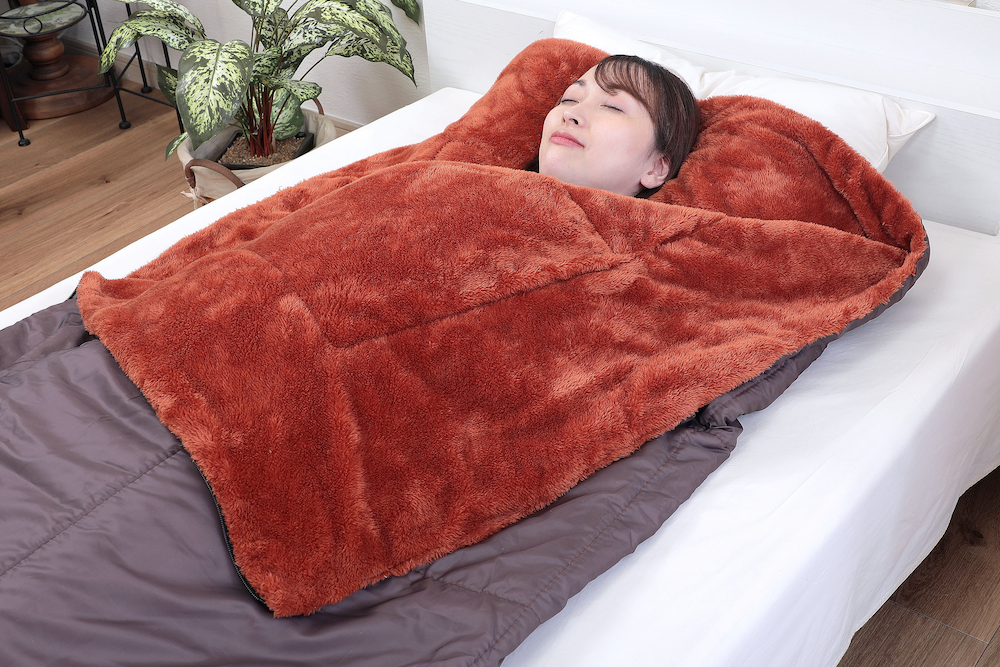 優れた蓄熱効果と保温性により、まるで岩盤浴のような寝心地を体感できる寝袋です。ファータッチの柔らかい肌ざわりが暖かさをキープするため、電気代いらずの節電エコアイテムとなっています。詰めるとクッションになる収納カバー付きで、アウトドアや災害時の備えにもおすすめ。洗濯機で丸洗いも可能です。