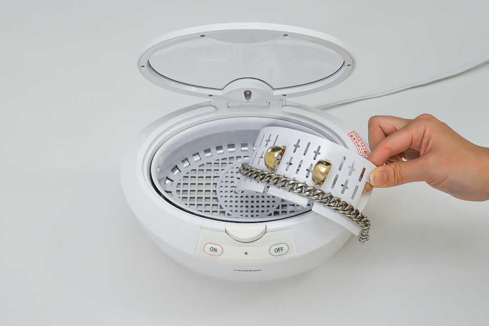 超音波の力でメガネ・日用小物類・貴金属などを驚くほどきれいに洗浄します。普段のお手入れでは落ちにくいガンコな汚れや、ブラシでは届かない隠れた部分の汚れもすっきり。もう大切なメガネやアクセサリーをごしごしこすって傷つける心配はありません。