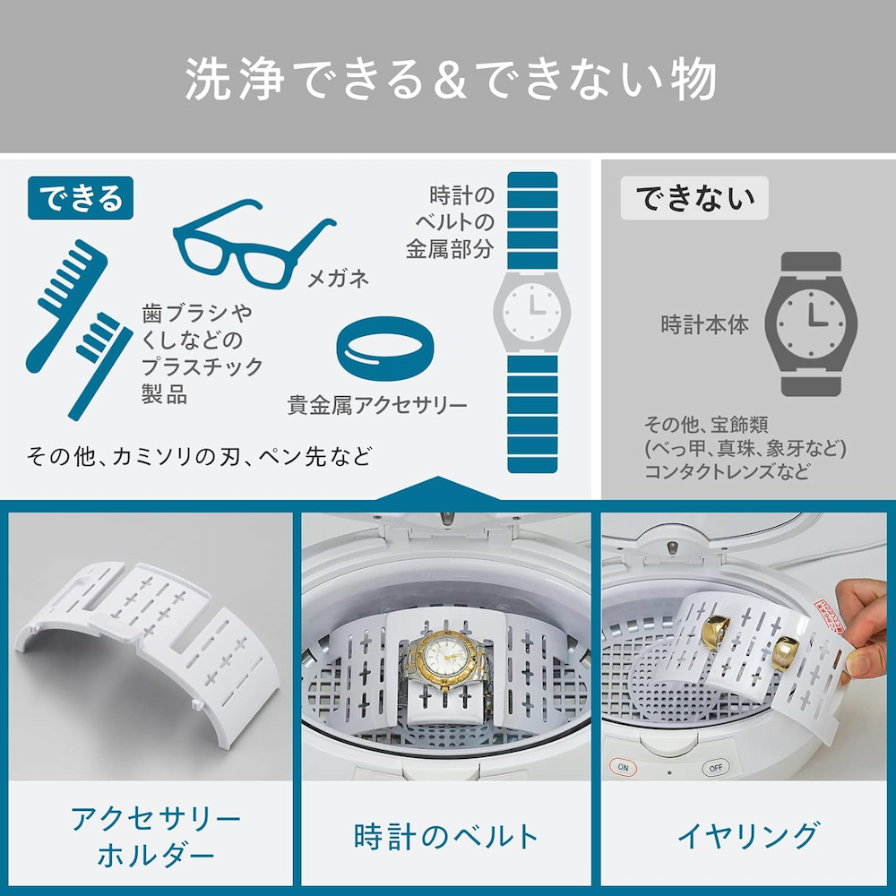 注:本製品は主にメガネ・日用小物類・貴金属には最適ですが、宝石の付いた宝飾類の洗浄には適しておりません。