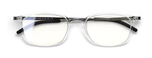 スリムグラスはフロントの天地が高く設計されており、老眼鏡をずらして鼻メガネとして使用される方でも見やすい設計となっております。視界に入っても気になりにくいクリアフレームとのコンビネーションで解放感のある視界を確保できます。