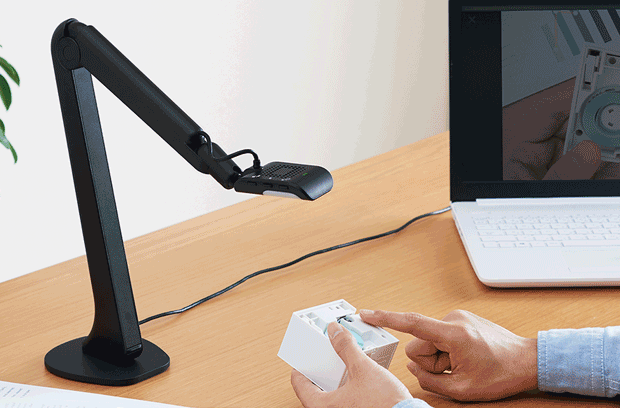 明るくきれいに撮影できるので、オンライン授業にも使えます。また、広い教室などでもPCに繋げて投影すれば、手元の見にくい動作や資料もアップで投影でき、授業効率もアップします。