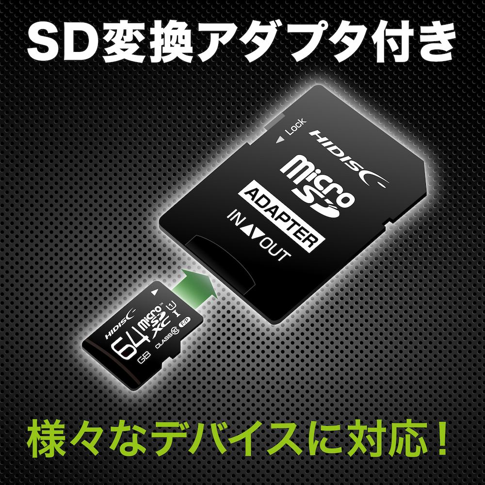 SD変換アダプタ付きの高速microSDXCカードです。64GBの大容量で、スマートフォンやゲーム機、カメラなど様々なデバイスに対応しています。