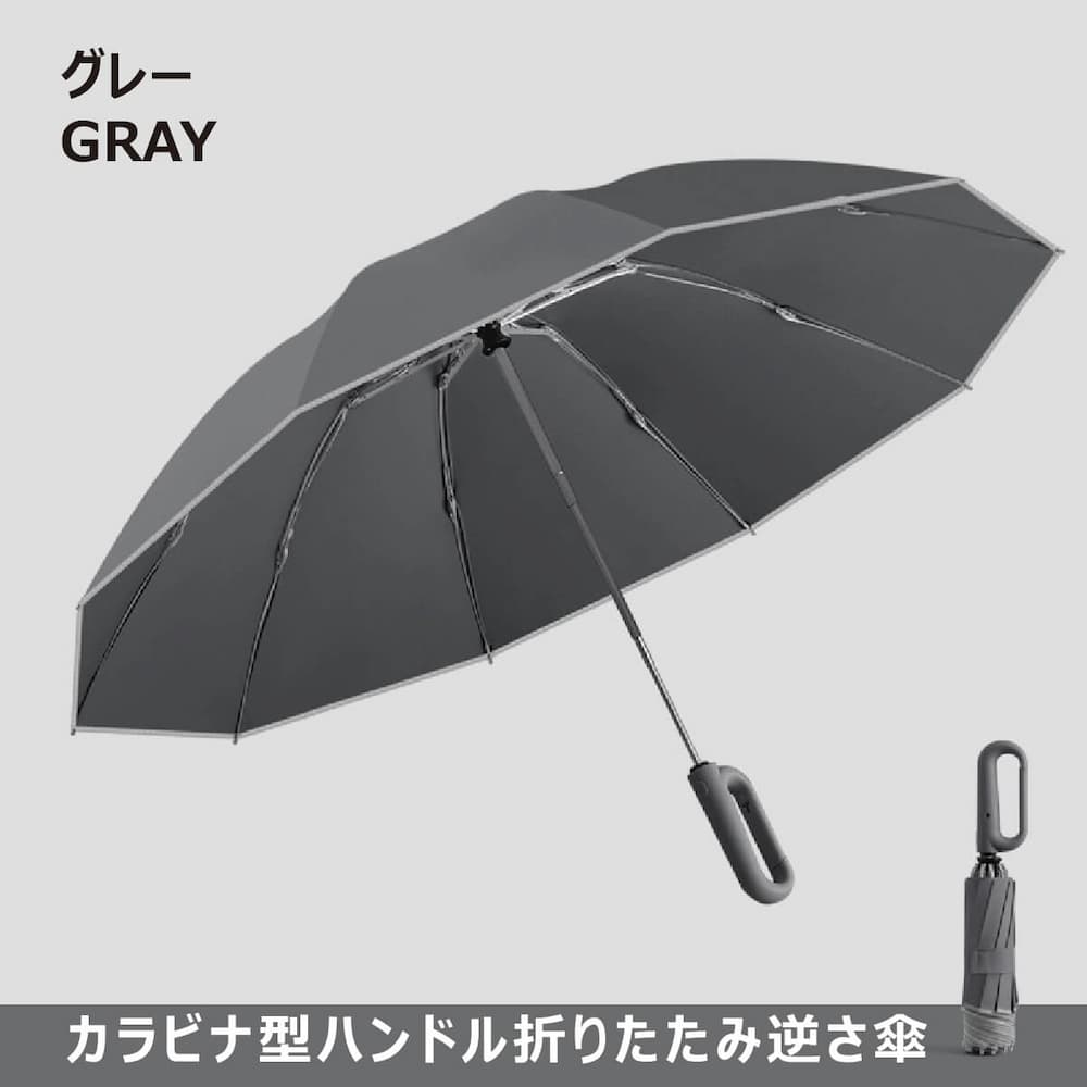 - MC-UMSR01-GY/カラビナ型折りたたみ逆カサ(グレー)