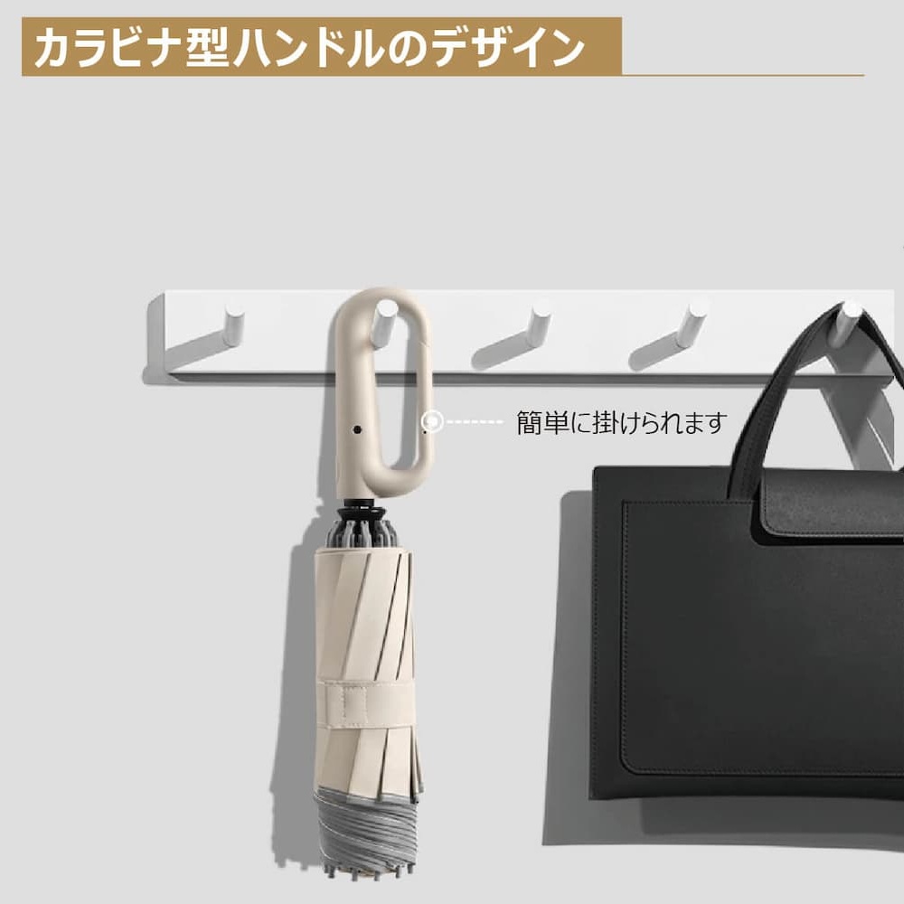 - MC-UMSR01-BG/カラビナ型折りたたみ逆カサ(ベージュ)