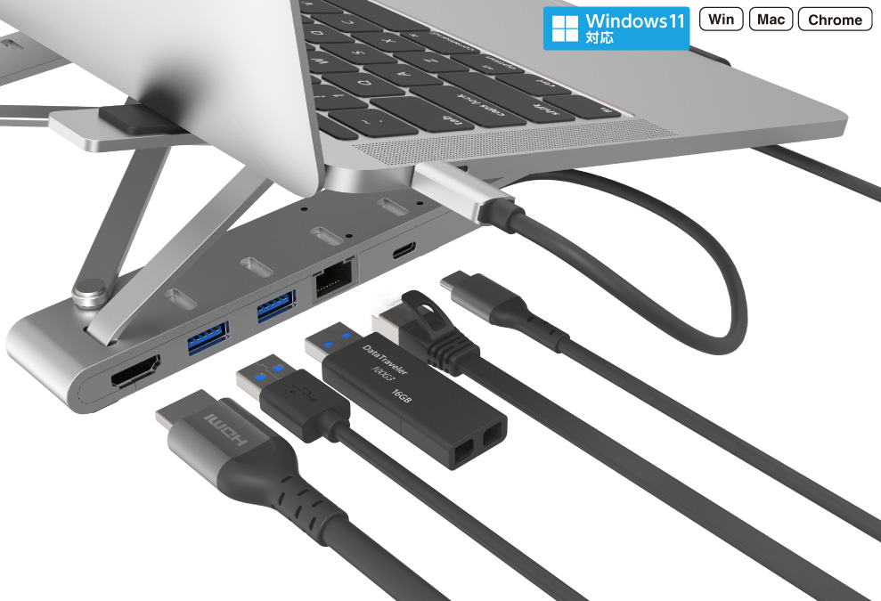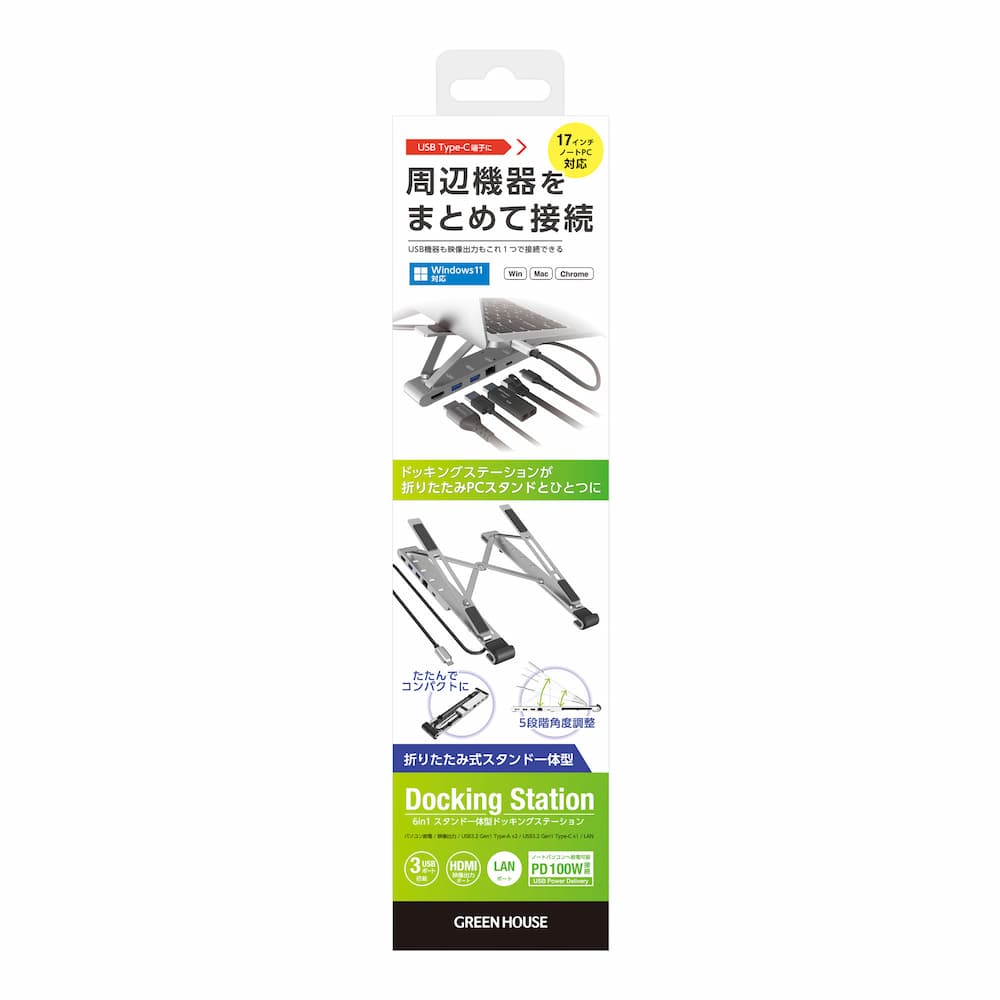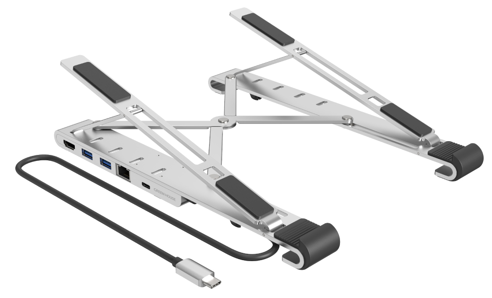 - GH-MHC6B-SV/ノートPCスタンド型ドッキングステーション 6in1 シルバー