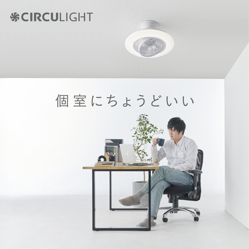 サーキュレーターとLEDシーリングライトがひとつになった、簡単取り付け可能のサーキュライトです。部屋の中心で気流のポンプのように空気を循環しながら、メインライトとして7段階の調光と5段階の調色で部屋を明るく彩ります。