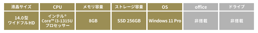 モニター14.0インチワイド(16:9)フルHD液晶ディスプレイ(非光沢、1920×1080ドット、400cd/m²、UWVA)、LEDバックライト ノングレア