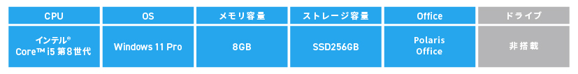 状態 中古:LIGHT(2年保証) モデル名・型番 HP EliteDesk 800 G4 DM 搭載OS Microsoft Windows 11 Pro 64bit(MAR) CPU インテル® Core™ i5 第8世代 メインメモリ容量/種別 8GB メインストレージ容量/種別 新品SSD 256GB オフィスソフト Polaris Office キーボード なし ディスプレイサイズ なし ディスプレイ解像度 なし タッチパネル なし カメラ なし 光学ドライブ なし LAN インテル® I219LM ギガビット ネットワーク コネクション 無線LAN インテル® Wireless-AC 9560 Bluetooth Bluetooth® V5.0準拠 メモリーカードスロット なし USB USB Type-C 3.1×1(前面1)、USB3.1×6(前面2、背面4) 映像出力 DisplayPort×2、VGA×1 本体サイズ W177×D175×H34mm 本体重量 約1.05kg 付属品 AC、Welcomeカード