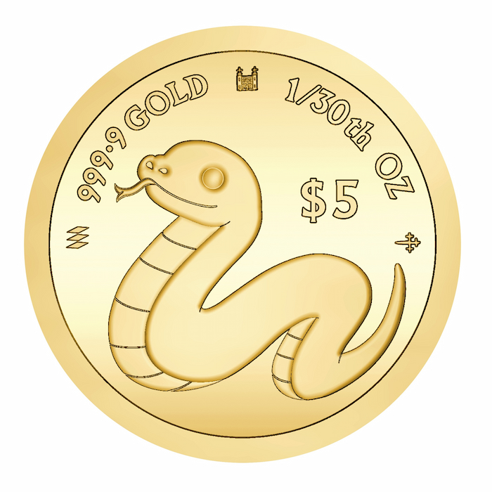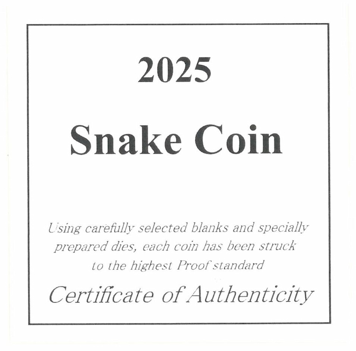 2025年の干支の「蛇(スネーク)」をモチーフにした金貨