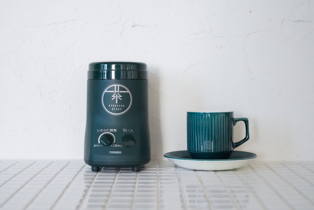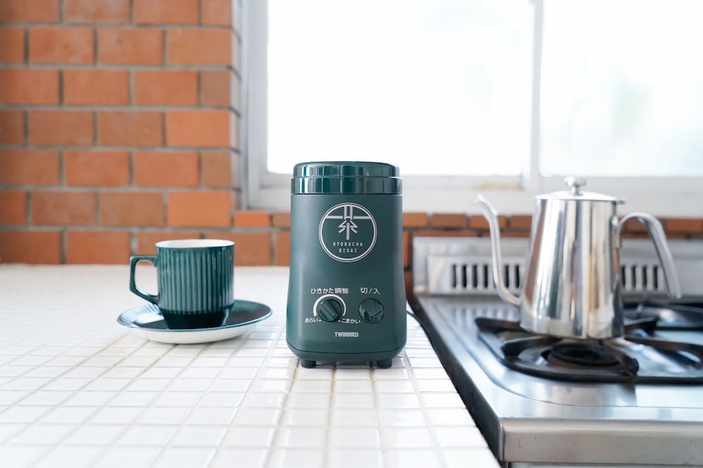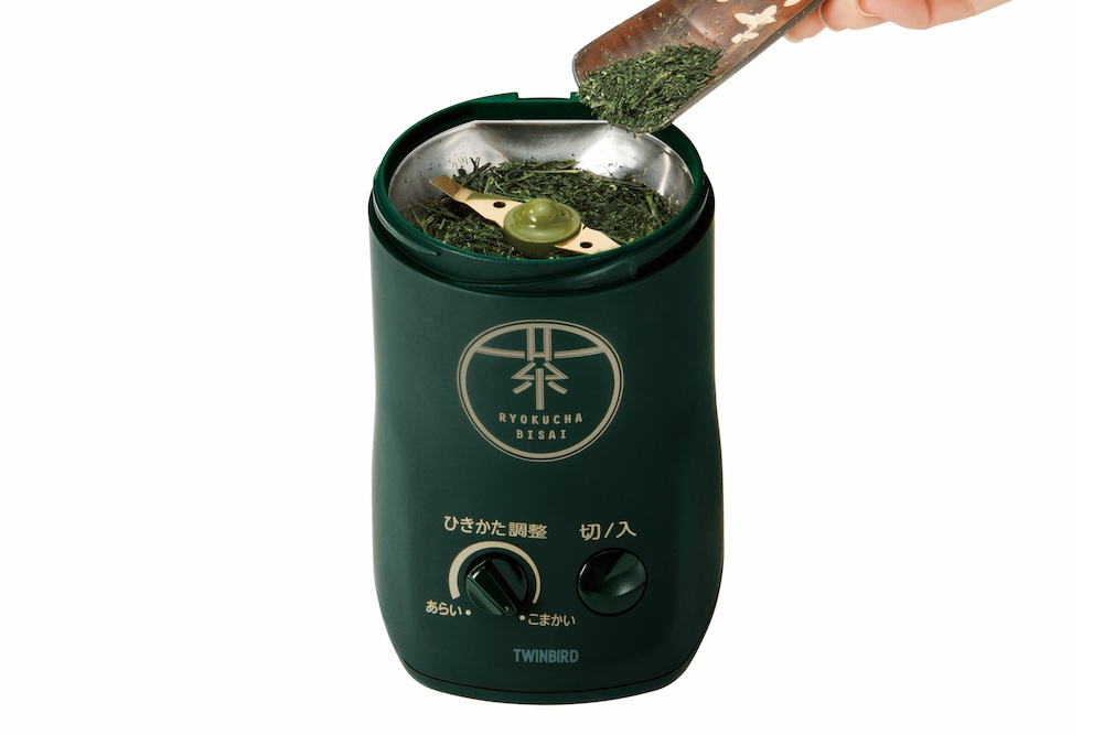ひき加減をつまみで無段階に調整でき、電動で簡単に粉末緑茶を作ることができるお茶ひき器です。粉末にすることで、茶葉に含まれる緑茶の栄養素を丸ごと摂取できます。緑茶としてだけでなく、ケーキやお茶漬け、緑茶ソースなど料理のアレンジにも活用できるアレンジレシピブック付です。