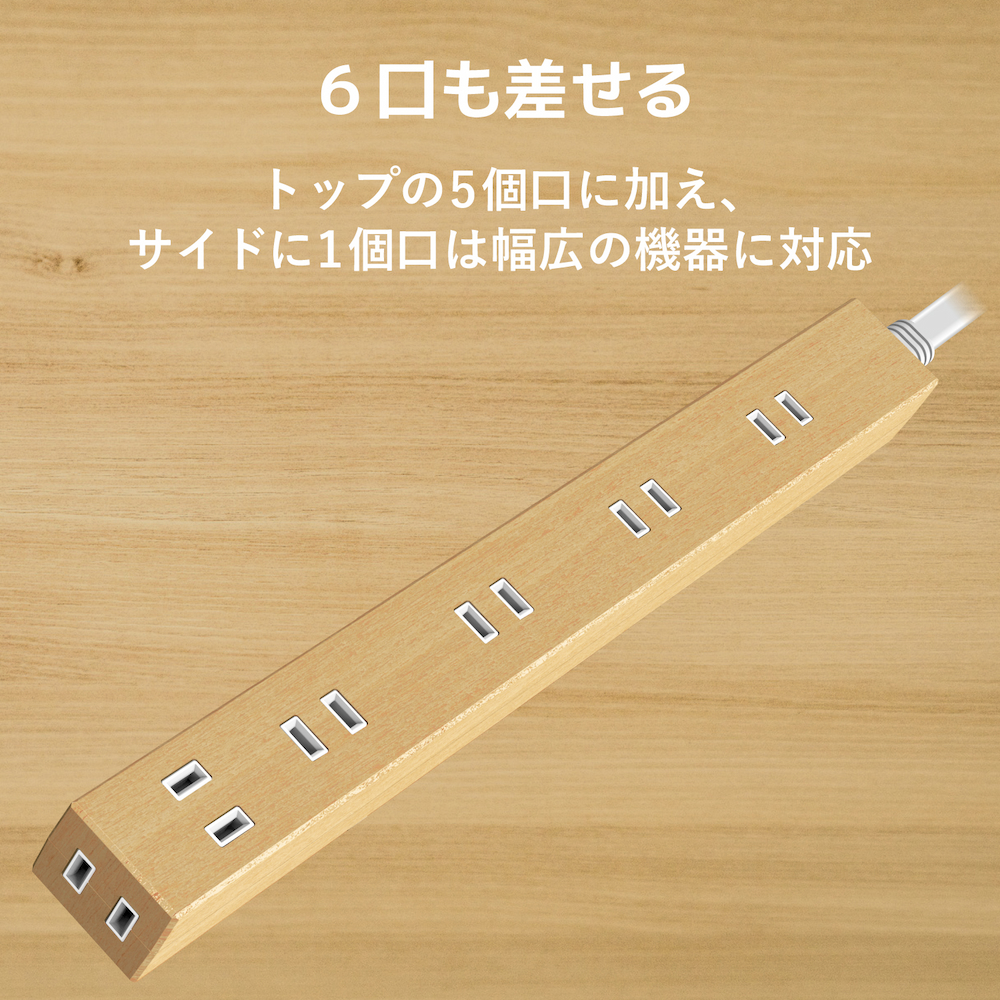 - トップの5個口・サイドに1個口を装備した便利な6個口。
