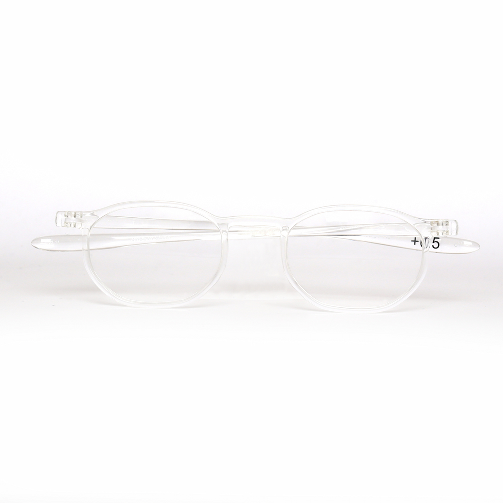 手元など近くがちょっと見づらい時に、近視用メガネや老眼鏡の上からかけるだけで近くがクッキリ見やすくなる”ちょい足し”用グラスです。メガネの上からかけても違和感のないフィット感と透明フレームで、重さもわずか15gの軽量設計。目立ちにくく自然な印象で着用できます。