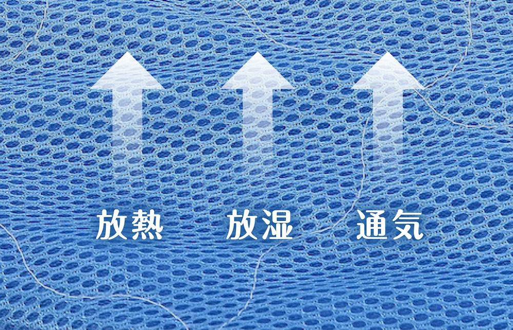 裏地のハニカムメッシュ生地は通気性に優れ、熱や湿気を逃がし、快適な睡眠環境作りに貢献します。