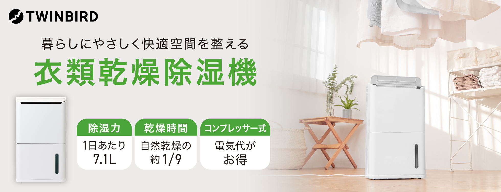 快適空間に整える、暮らしにやさしい衣類乾燥除湿機