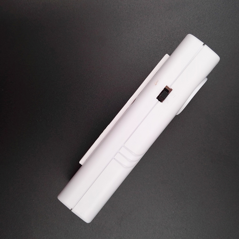 本体を両面テープで貼り付けるだけ。電源は単4乾電池2本のみで、工事や配線作業などは不要です。