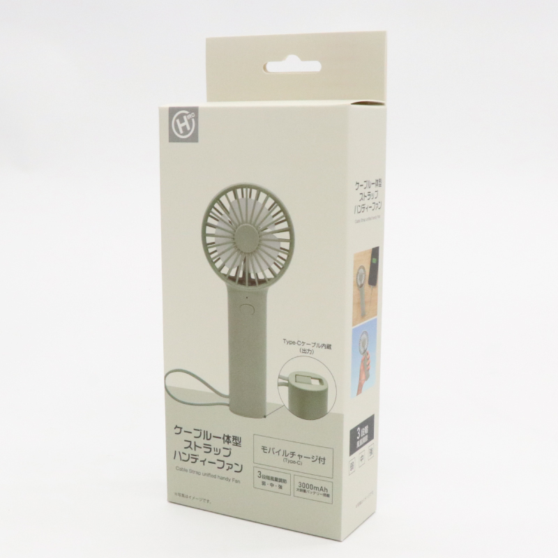 本体とUSBType-Cケーブル一体型のハンディファンです。いつでもどこでも涼めるミニ扇風機だけではなく、スマホやタブレットの充電器としても使用できる2WAY仕様。カバンからサッと取り出せるコンパクトサイズで持ち歩きに便利です。
