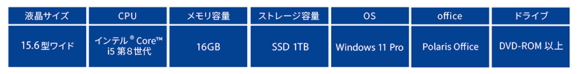 状態 中古:無期限保証 モデル名・型番 dynabook 搭載OS Microsoft Windows 11 Pro 64bit(MAR) CPU インテル® Core™ i5 第8世代 メインメモリ容量/種別 16GB メインストレージ容量/種別 新品SSD 1TB オフィスソフト Polaris Office キーボード 106キー(JIS配列準拠/テンキー付)、キーピッチ:19mm、キーストローク:1.5mm ディスプレイサイズ 15.6型ワイド ディスプレイ解像度 HD:1366×768 タッチパネル なし カメラ なし 光学ドライブ DVD-ROM以上 LAN 1000Base-T/100Base-TX/10Base-T 無線LAN IEEE802.11a/b/g/n/ac Bluetooth Bluetooth® Ver4.2 メモリーカードスロット あり USB USB3.0×4 映像出力 HDMI×1、RGB(15ピン ミニD-sub 3段)×1 本体サイズ(約) 幅379.0×奥行257.9×高さ23.9mm 本体重量 約2.4kg 付属品 AC、Welcomeカード