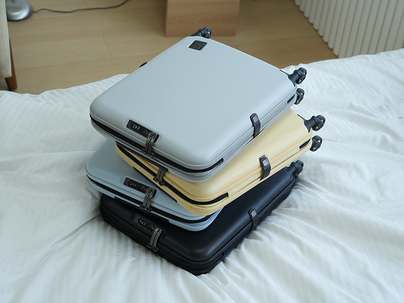 11cmの薄さにまで折り畳める、ダイヤル式スーツケースです。軽量素材&スマート構造で驚くほど軽く、さらに使わない時や荷物が減った時に収納しやすい省スペース設計となっています。3段階伸縮式の持ち手と小回りが利く4輪キャスターで移動もスムーズ。2泊3日の旅行に最適な約35リットルサイズです。