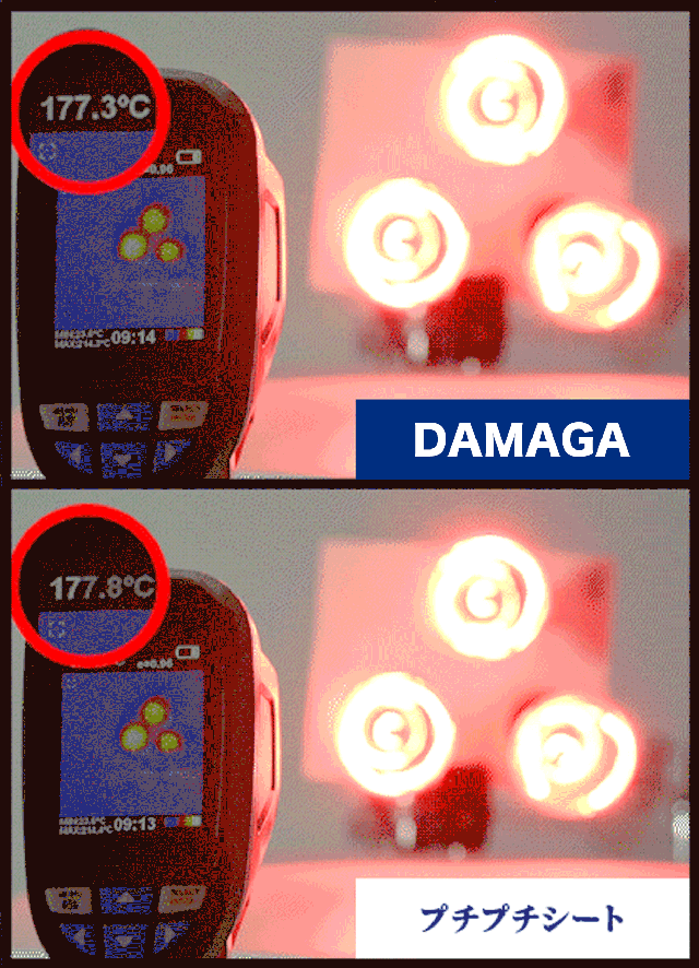 メーカーテスト環境:2023年11月23日検査期間にて試験用器具2個を用意し赤外線リーフを設置。ガラス板をハンプから190mm、床から120mm離れた位置に設置。シートが付着したガラス板は、取付面が底に向かって設置。10分間気温は20±1にし変化を確認。
