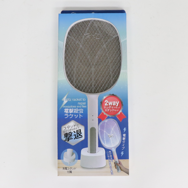 2800Vの電気ショックでハエや蚊を撃退します。立てて待ち伏せるスタンドモードと、直接当てに行けるハンディモードの2WAY仕様です。