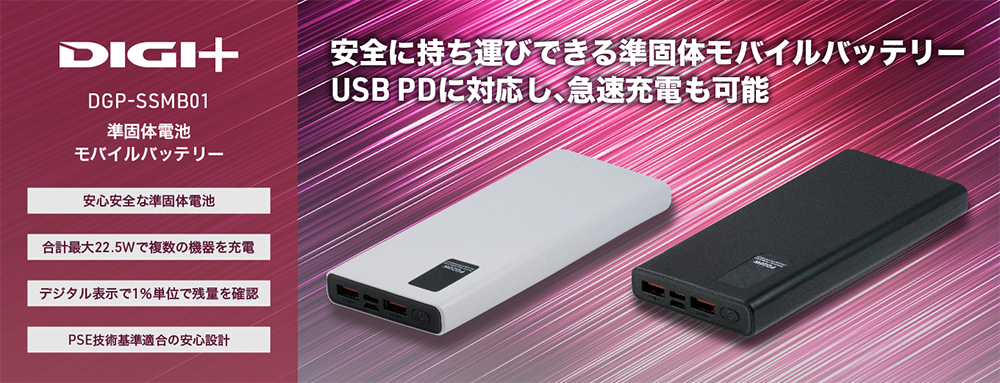 DIGI+準固体電池モバイルバッテリー(黒) DGP-SSMB01-BK