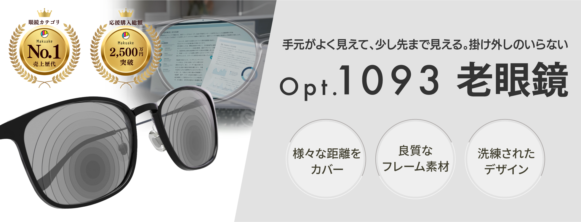 - 最近近くが⾒えづらいと感じ始めた⽅、軽い度数の⽼眼鏡をすでにお使いの⽅など幅広い⽅におすすめ