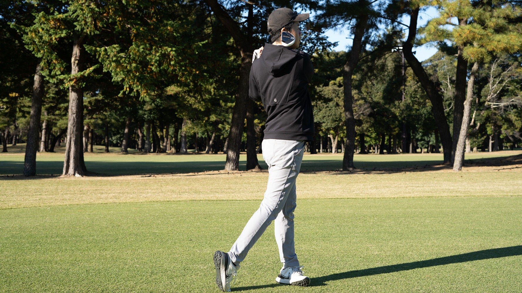 フェアウェイウッドのスイングはアイアンとは少し異なり、アイアンのように打ち込むのではなく払い打つ意識で打ちます。フォロースルーも大切で、振り抜いた後の姿勢をしっかり保つことで、インパクトの安定性が増します。
