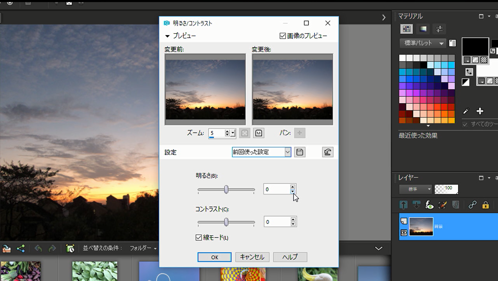 色やグラデーションを設定するマテリアルパレットの使い方がわかります。