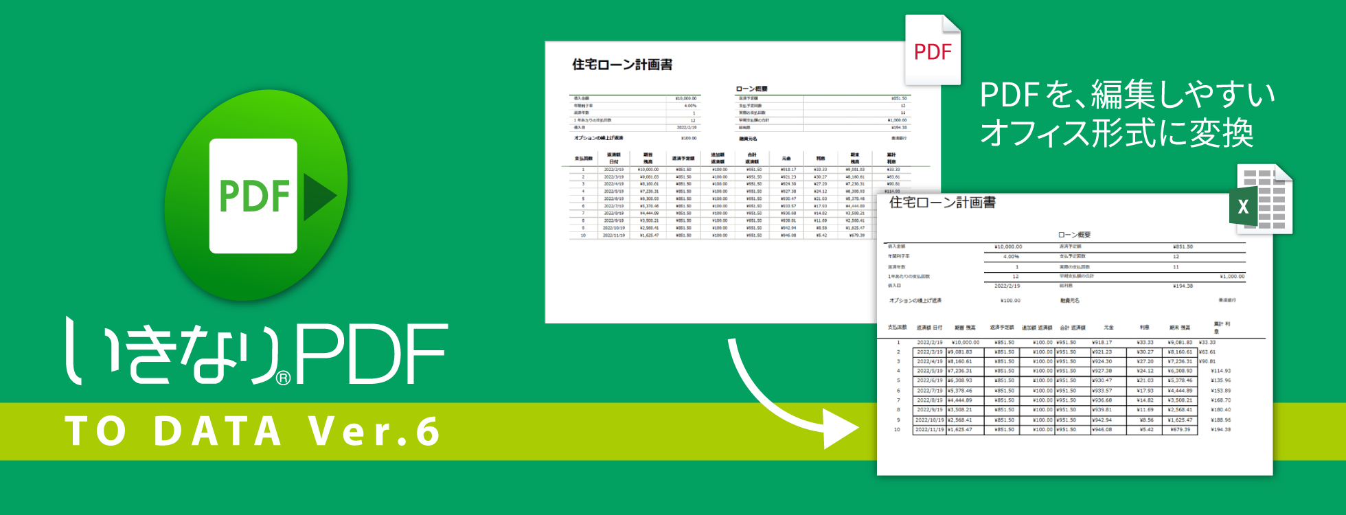 元のレイアウトを保持したまま変換できます。Excelでは表組みをセルとして再現。数値の扱いも快適です。