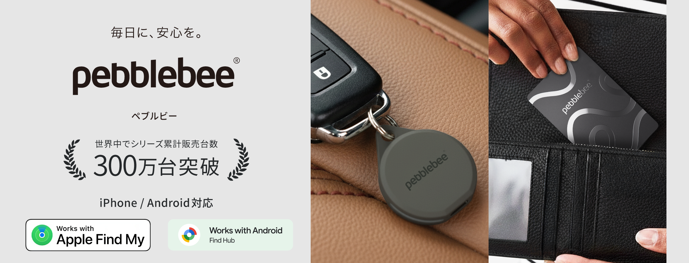 | 本体及び付属品 | Pebblebee Clip 5、キーホルダー | Pebblebee Card 5 |