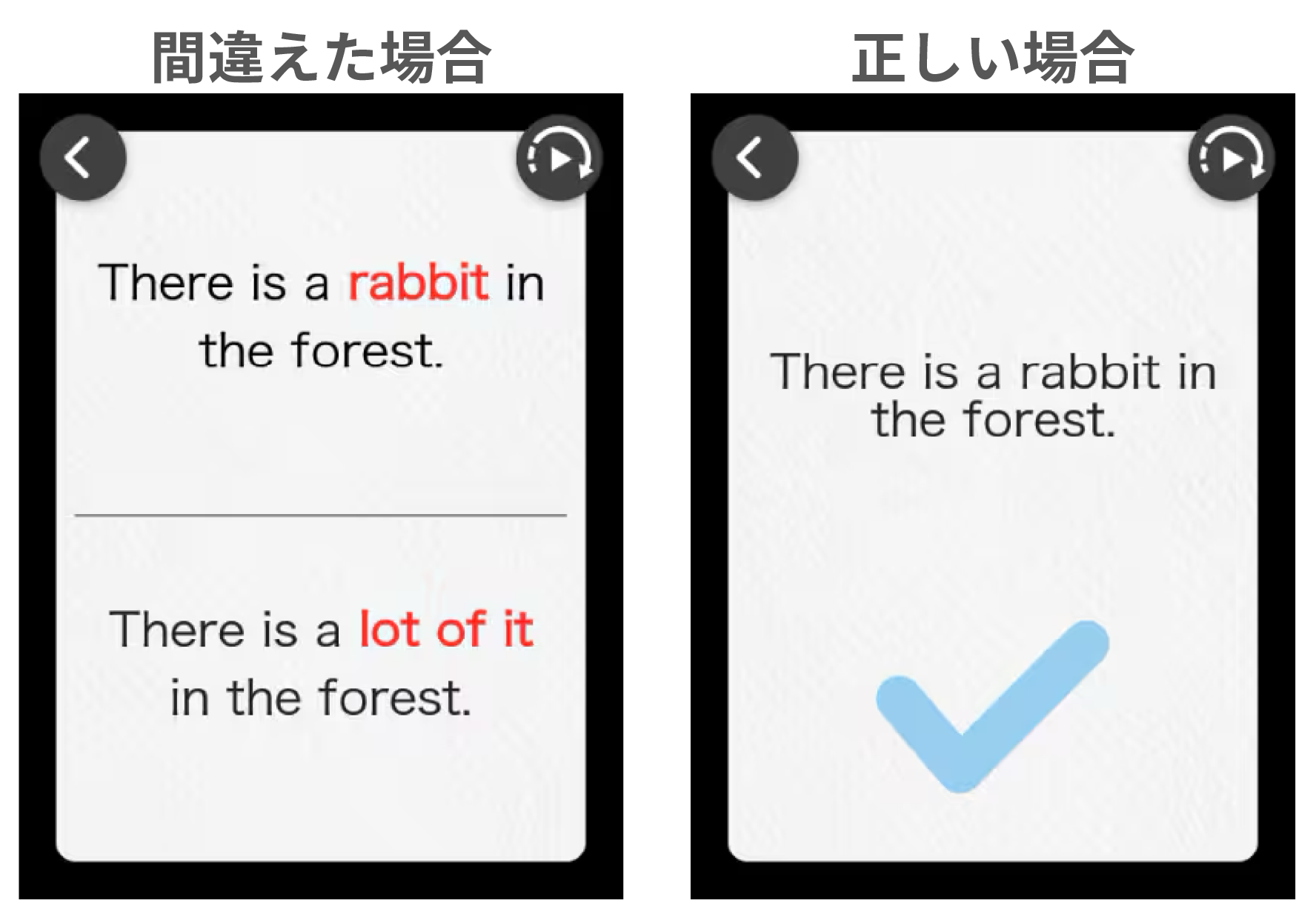 正誤判定のほか、発音の違った単語を赤字で表示し、どこの発音を改善すべきか分かりやすいです。英語、中国語だけでなく、ポケトークの全対応言語で使えます。