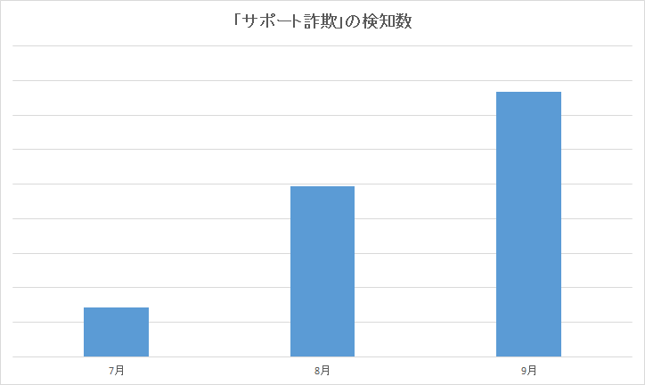 弊社「スーパーセキュリティ」がサポート詐欺を検知した数の推移は下図の通りです。