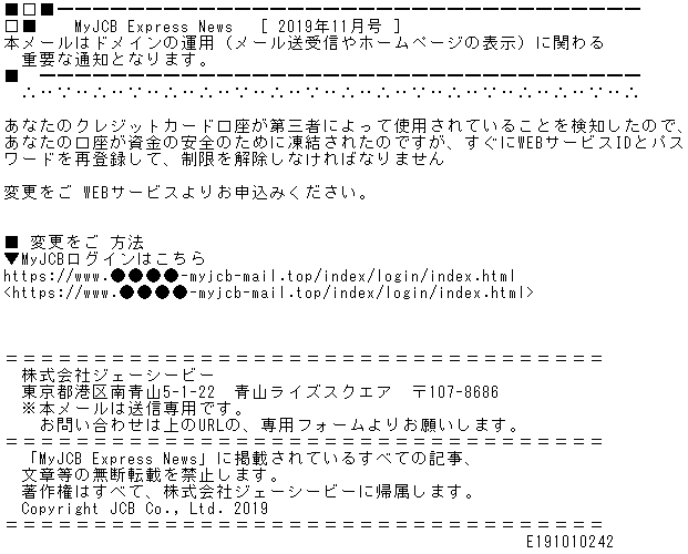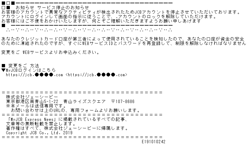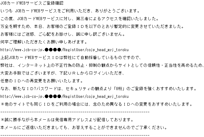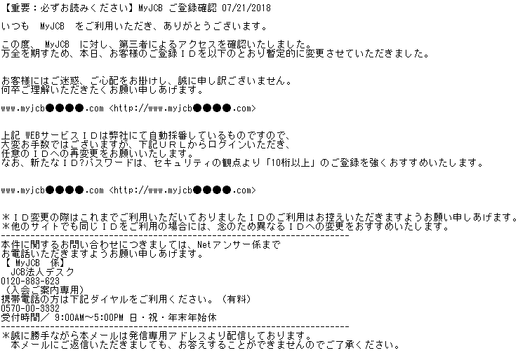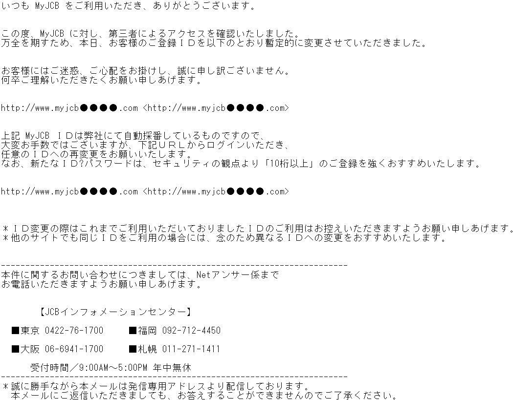 「MyJCBアカウントの利用制限に関する重要なご案内」番号:XX-XXXXXXXXXXX