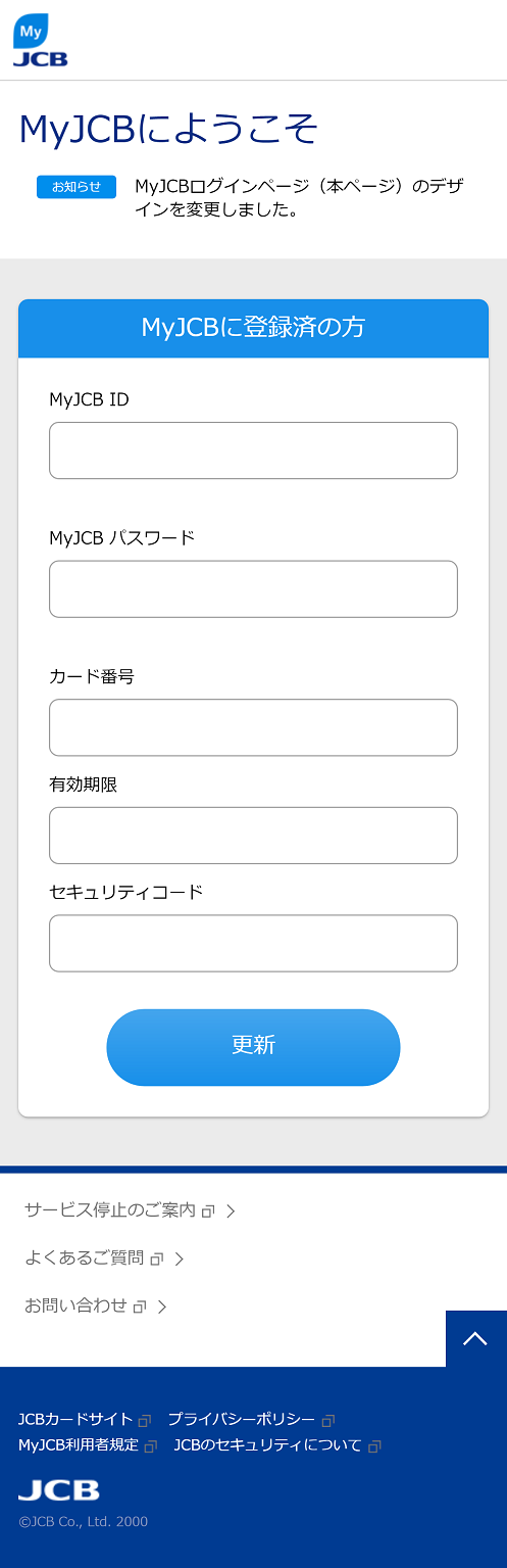 MyJCBカードダイレクトをご利用いただき、誠にありがとうございます