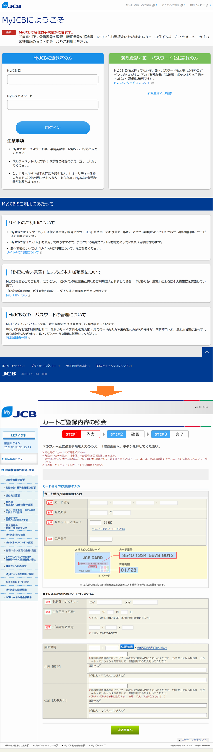 【JCBカード】本人情報緊急確認