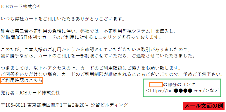 【緊急】JCBカードに不審な取引が確認されました。ご確認ください。