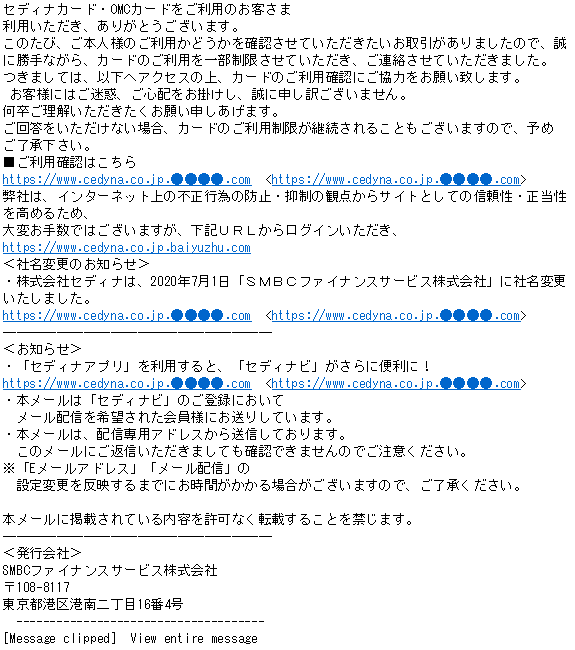 「セディナカード・OMC カード」を騙ったフィッシング詐欺が増加していると、フィッシング対策協議会が注意を呼びかけています。