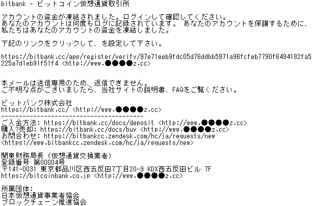 仮想通貨取引所「bitbank」を騙るフィッシング詐欺が確認されたため、フィッシング対策協議会が注意を呼びかけています。偽のWebサイトへ誘導してアカウント情報 (メールアドレス・パスワード) を入力させようとするものですのでご注意ください。