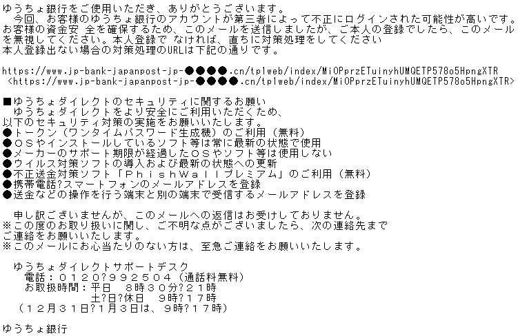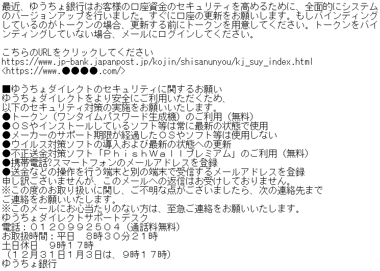 <緊急連絡>【株式会社ゆうちょ銀行】ご確認の願い