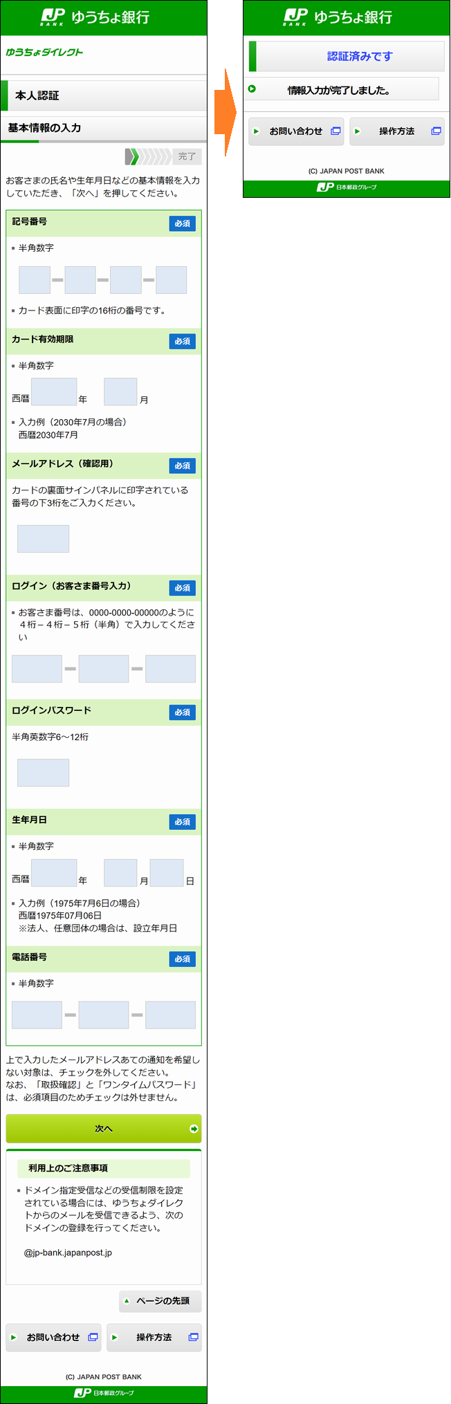 【JP BANK カード】個人情報確認