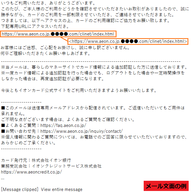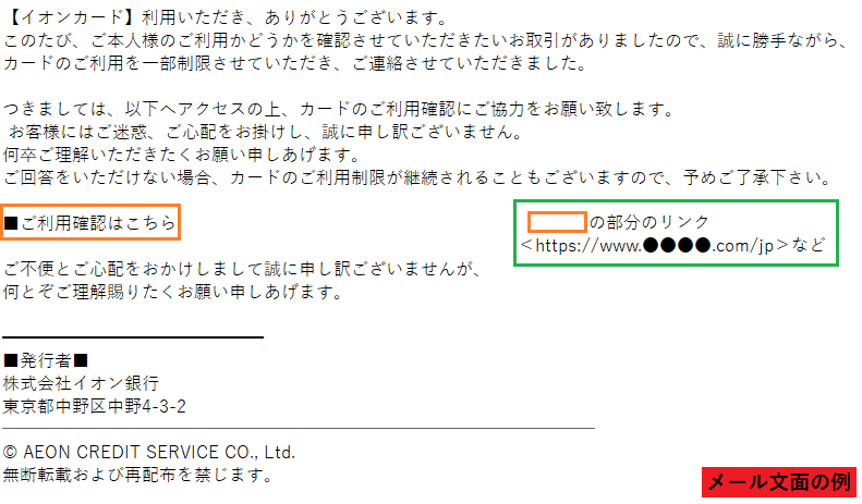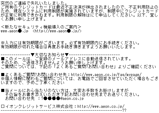 【緊急の連絡 】イオンカード ご利用確認のお願い